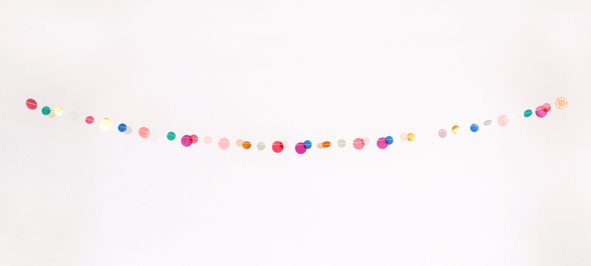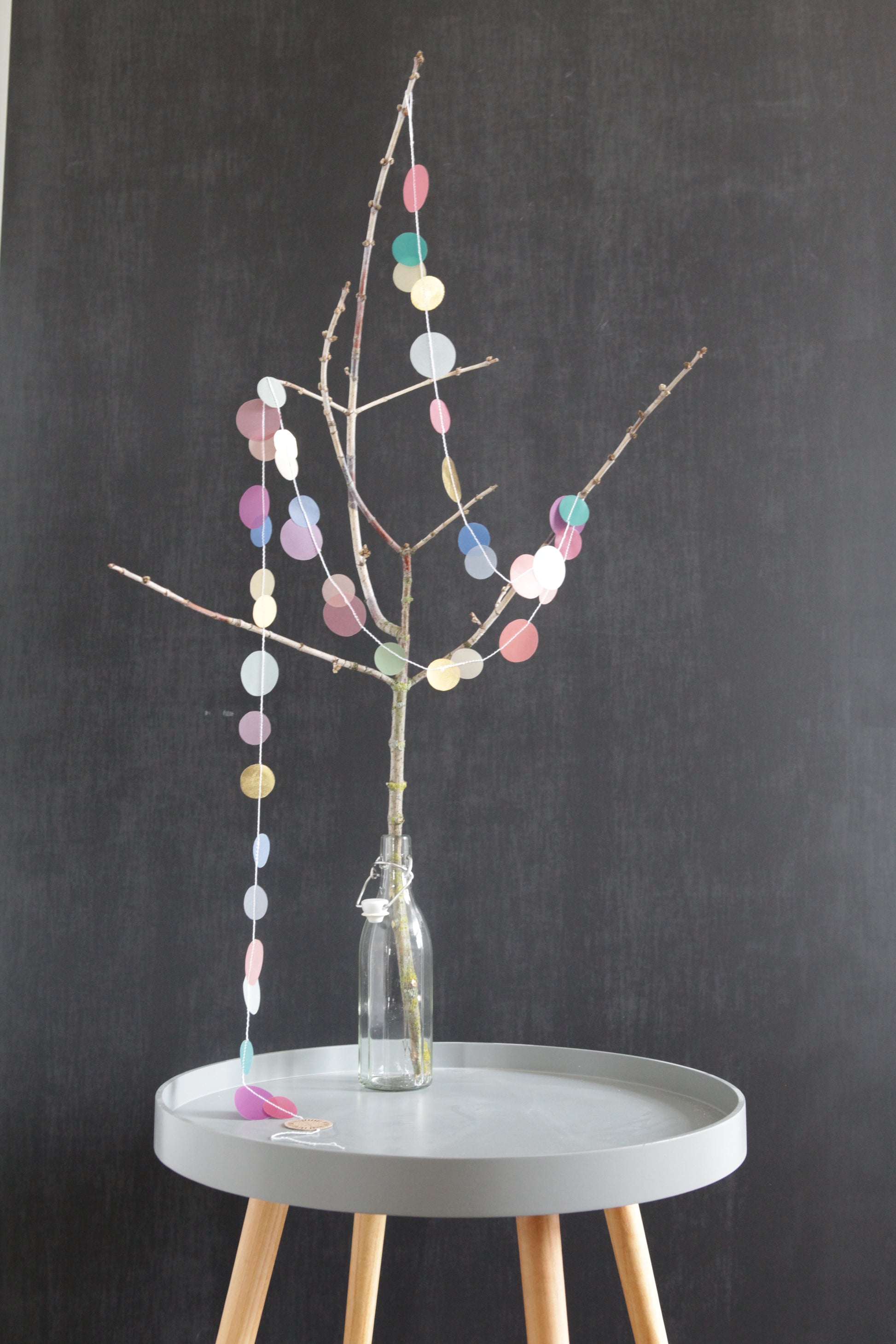 Diese farbenfrohe Konfetti-Girlande aus runden Papierkreisen bringt sofort gute Laune in jeden Raum. Die Farben sorgen für eine frische, fröhliche Atmosphäre und eignen sich ideal für Feiern, Kinderzimmer oder als saisonale Dekoration.